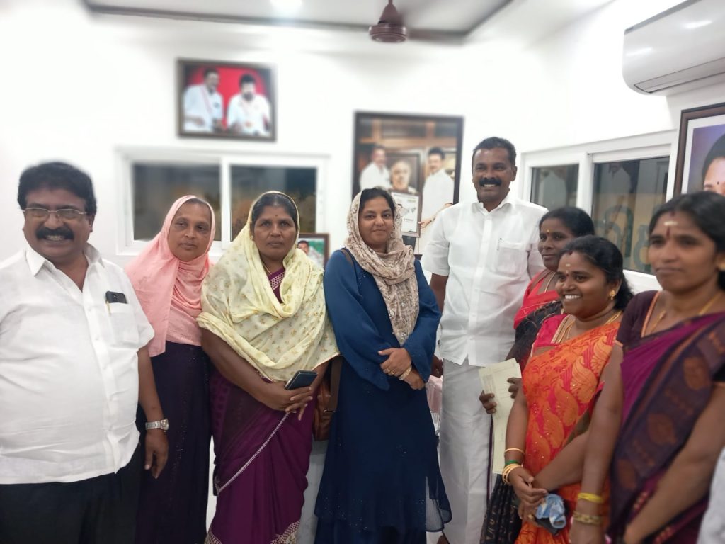 தென்காசி தெற்கு மாவட்ட திமுக சார்பாக நடைபெற்ற மகளிர் கருத்தரங்கு பயிற்சி முகாமில் கலந்து கொண்டு மாவட்ட செயலாளர் வே ஜெயபாலனிடம் வாழ்த்துக்களை பெற்றபோது உடன் மேற்க்கு ஒன்றிய செயலாளர் திவான் ஒலி மாவட்ட மகளிர் அணி துணை அமைப்பாளர் தர்மசெல்வி ஒன்றிய மகளிர் அணி அமைப்பாளர் மைமுன் நஜ்மா மகளிர் தொண்டரணி இசக்கி அம்மாள் சல்மா பீவி ஆகியோர் உடன் இருந்தனர்