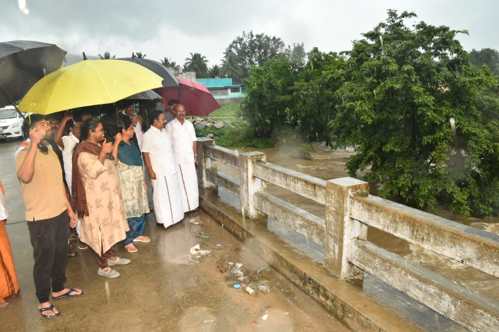 இத்தகவலை அறிந்த சுற்றுலாத்துறை அமைச்சர் ராஜேந்திரன், மாவட்ட கண்காணிப்பு அலுவலர், மற்றும் தமிழ்நாடு மகளிர் மேம்பாட்டு நிறுவன மேலாண்மை இயக்குனர் திவ்யதர்ஷினி, மாவட்ட ஆட்சியர் சாந்தி மாவட்ட காவல் கண்காணிப்பாளர் மகேஸ்வரன் உள்ளிட்ட அரசு அதிகாரிகள் நேரில் சென்று பார்வையிட்டனர். அப்போது பேரிடர் மீட்பு குழுவினர் மூலம் தவிப்புக்குள்ளான கிராம மக்களுக்கு உதவி செய்து அக்கரைக்கு அழைத்துச் சென்றனர்.