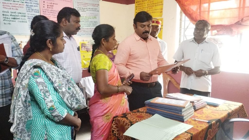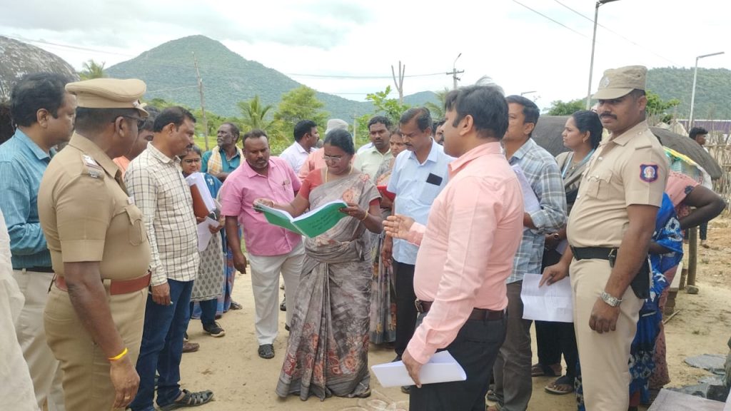 மீதமுள்ள இரண்டு வீடுகள் பல்வேறு காரணங்களை காட்டி கட்டுமான பணிகள் நிறுத்தி வைக்கப்பட்டன. திடீரென அப்பகுதியில் ஆய்வுக்குச் சென்ற மாவட்ட ஆட்சியர் சதீஷ், இருளர் இன மக்களிடையே அவர்களின் குறை நிறைகளை கேட்டறிந்தார். அப்போது கட்டுமான பணிகள் முடிவடையாத இரண்டு வீடுகளுக்கு முன்பு சென்ற ஆட்சியர், கிராம நிர்வாக அலுவலர் பொற்கொடி மற்றும் அவரின் உதவியாளர், பஞ்சாயத்து செயலாளர் மற்றும் அரசு பொறியாளர் ஆகியோரிடம் வீடுகள் குறித்து விசாரணை மேற்கொண்டார்.