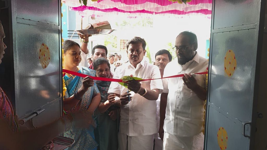 திருப்பத்தூரில் 12.56 லட்சம் மதிப்பீட்டில் கட்டி முடிக்கப்பட்ட ஒருங்கிணைந்த குழந்தைகள் வளர்ச்சி மையத்தை சட்டமன்ற உறுப்பினர் நல்லதம்பி ரிப்பன் வெட்டி திறந்து வைத்தார்! நியாய விலை கடை மற்றும் பள்ளி கட்டிடத்திற்கு அடிக்கல் நாட்டினார்
