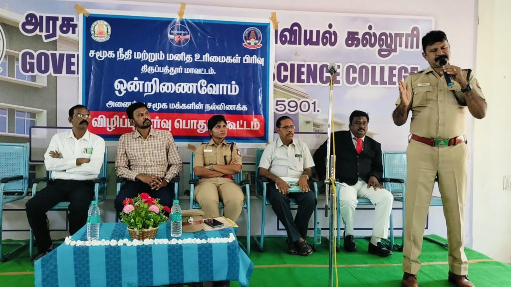 திருப்பத்தூர் மாவட்டம் கந்திலி கரியம்பட்டி அரசு கலை மற்றும் அறிவியல் கல்லூரியில் காவல்துறை சார்பில்அனைத்து சமூக மக்களின் நல்லிணக்க விழிப்புணர்வு மற்றும் உறுதிமொழி ஏற்பு நிகழ்ச்சி கல்லூரி மாணவ மாணவியர் இடையே நடைபெற்றது. இந்நிகழ்ச்சியில் 300 க் கும் மேற்பட்ட கல்லூரி மாணவ மாணவிகள் பங்கேற்றனர்.