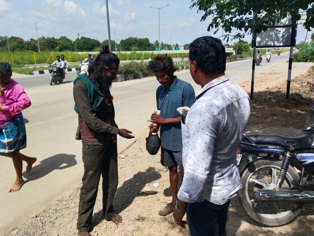 திருப்பத்தூர் மாவட்டம், நாட்றம்பள்ளி காவல் நிலையத்தில் பணியாற்றி வரும் காவல் உதவி ஆய்வாளர் மஞ்சுநாதன் சாலையில் உணவில்லாமல் தவித்தவர்களுக்கு உணவளித்துள்ளார்.