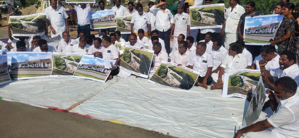 மக்களின் கோரிக்கையை ஏற்று எடப்பாடியார் கொண்டு வந்த புதிய பேருந்து நிலையத்தை கிடப்பில் போட்டதை மீண்டும் செயல்படுத்த வேண்டும் என்று தமிழக அரசுக்கு கவனயீர்ப்பு அறப்போராட்டத்தில் ஈடுபட்டுள்ளோம் .