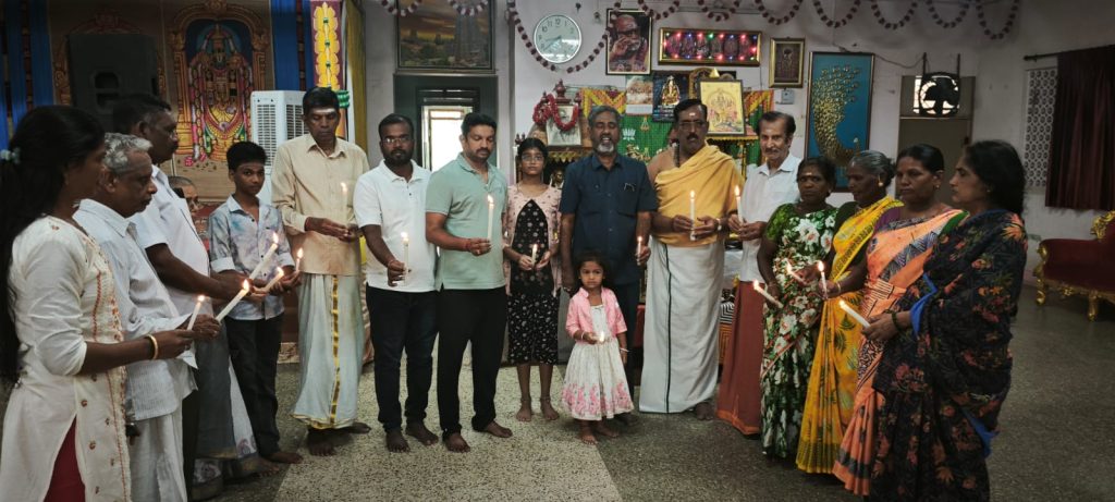 கரூரில் நேற்று அகால மரணம் அடைந்த குழந்தைகள் பெண்கள் மற்றும் பொதுமக்கள் 40 பேர் ஆத்மா சாந்தியடைய மதுரை அனுஷத்தின் அனுக்கிரகம் அமைப்பு சார்பில் மெழுகுவத்தி ஏற்றி அஞ்சலி நிகழ்ச்சி நடைபெற்றது.மதுரை அனுஷத்தின் அனுக்கிரகம் அமைப்பின் நிறுவனர் நெல்லை பாலு தலைமையில் நடந்த இந்த நிகழ்வில் தமிழ்நாடு பிராமண சமாஜம் மாவட்ட செயலாளர் ஸ்ரீராம், சோழவந்தான் தொழிலதிபர் ஆனந்தன் உட்பட பெண்கள் குழந்தைகள் பொதுமக்கள் அஞ்சலி செலுத்தினர்.தமிழக மற்றும் மத்திய அரசு உயிரிழந்தோரின் குடும்பத்திற்கு உடனடி நிவாரணம் வழங்க வேண்டும் என்றும் இது மாதிரி சம்பவம் இனிமேல் நடைபெறாமல் பார்த்துக் கொள்ள வேண்டும் என்றும் நிகழ்வில் கோரிக்கை வைக்கப்பட்டது.நிகழ்ச்சிக்கான ஏற்பாட்டினை மதுரை அனுஷத்தின் அனுக்கிரகம் நிறுவனர் நெல்லை பாலு செய்திருந்தார்.