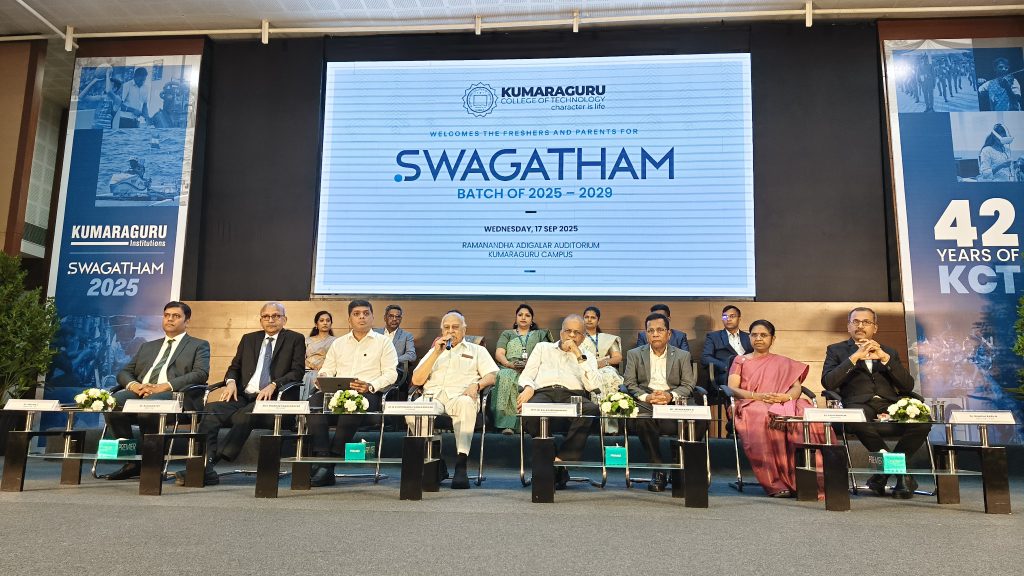 கோவை குமரகுரு தொழில்நுட்பக் கல்லூரியில் 2025 முதல் 2029 வரை உயர்கல்வியைத் தொடரும் 42வது பேட்ஜ் மாணவர்களுக்கான வரவேற்பு மற்றும் வழிகாட்டுதல் நிகழ்ச்சியான ஸ்வாகதம் நிகழ்ச்சி நடைபெற்றது.