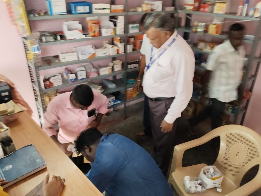 பெரம்பலூர் மாவட்டம், பென்னக்கோணத்தில் கதிர்வேல் (33) என்பவர் தனது வீட்டின் அருகே அரசு அனுமதியின்றி போலியாக மருத்துவம் பார்த்து வருவதாக சுகாதாரத்துறை இணை இயக்குநருக்கு வந்த புகாரின் அடிப்படையில், இணை இயக்குனர் மரு.மாரிமுத்து அவர்கள் திடீர் ஆய்வு செய்தார்.