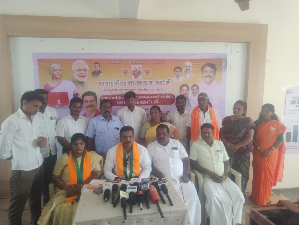 திருவண்ணாமலை அவலூர்பேட்டை சாலையில் அமைந்துள்ள பாரதிய ஜனதா கட்சி அலுவலகத்தில், திருவண்ணாமலை வடக்கு மற்றும் தெற்கு மாவட்ட பாஜக சார்பில் 2026 ஆம் ஆண்டிற்கான மத்திய பட்ஜெட் விளக்க செய்தியாளர் சந்திப்பு நடைபெற்றது. இதில் பாஜக மாநில செய்தித் தொடர்பாளர் A.N.S. பிரசாத் செய்தியாளர்களை சந்தித்து பேட்டியளித்தார்.