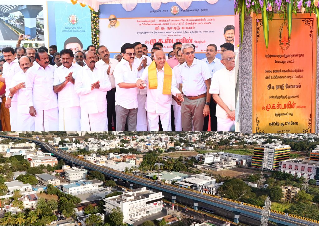 வழித்தட மேம்பாலத்திற்கு “ஜி.டி. நாயுடு மேம்பாலம்” என்று பெயர் சூட்டப்பட்டு பொதுமக்கள் பயன்பாட்டுக்காக திறந்து வைத்தார். இதில் பொதுப்பணிகள், நெடுஞ்சாலைகள் மற்றும் சிறு துறைமுங்கள் துறை அமைச்சர் எ.வ.வேலு, தமிழக வீட்டுவசதி மற்றும் நகர்ப்புர வளர்ச்சி, மதுவிலக்கு மற்றும் ஆயத்தீர்வைத் துறை செய்தித் துறை அமைச்சர் மு.பெ. சாமிநாதன், நாடாளுமன்ற உறுப்பினர் அந்தியூர் செல்வராஜ், சட்டமன்ற உறுப்பினர்கள் வி.செந்தில்பாலாஜி, ஈ.ஆர்.ஈஸ்வரன், அமைச்சர். சு. முத்துசாமி, குறு, சிறு மற்றும் நடுத்தரத் தொழில் நிறுவனங்கள் துறை அமைச்சர் தா.மோ.அன்பரசன், தமிழ் வளர்ச்சி மற்றும் முன்னாள் அமைச்சர் பொங்கலூர் நா. பழனிசாமி, நெடுஞ்சாலைகள் மற்றும் சிறுதுறைமுகங்கள் துறை செயலாளர் ஆர்.செல்வராஜ், கோயம்புத்தூர் மாவட்ட ஆட்சித் தலைவர் பவன்குமார் க. கிரியப்பனவர், தலைமைப்பொறியாளர் (திட்டங்கள்) முனைவர் ஆர். கிருஷ்ணசாமி, உள்ளாட்சி அமைப்புகளின் பிரதிநிதிகள், அரசு உயர் அலுவலர்கள் மற்றும் ஜி.டி. நாயுடு அவர்களின் குடும்பத்தினர் என பலரும் கலந்து கொண்டனர் என்பது குறிப்பிடத்தக்கது.