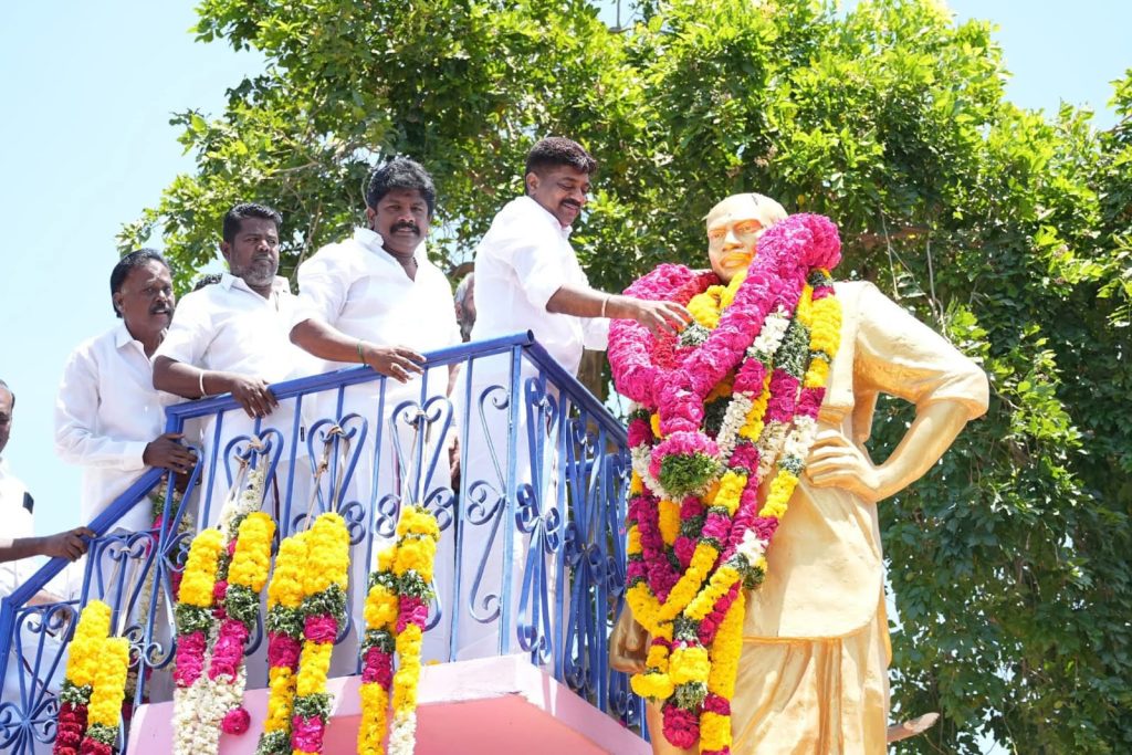 ராமநாதபுரம் சட்டமன்ற தொகுதி மண்டபம் மேற்கு ஒன்றியம் இரட்டையூரணி ஊராட்சியில் உள்ள கர்ம வீரர் காமராஜர் திருஉருவ சிலைக்கு ராமநாதபுரம் திமுக மாவட்டகழக செயலாளரும் சட்டமன்ற உறுப்பினருமான காதர்பாட்ஷா முத்துராமலிங்கம் மாலை அணிவித்து மரியாதை செலுத்தினார் அதனை