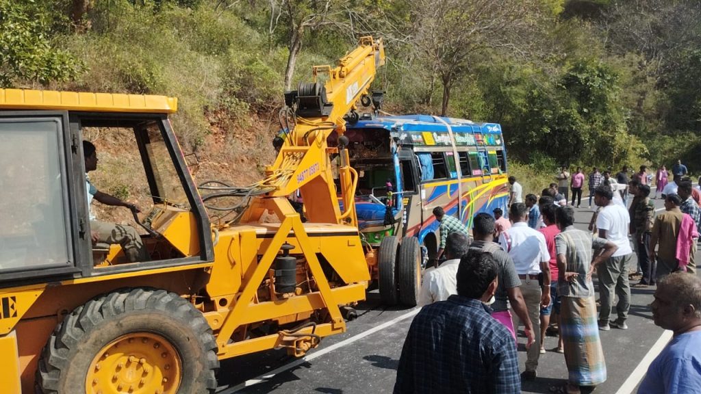 ஒகேனக்கல் மலைப்பாதையில் பள்ளத்தை நோக்கி சென்று கொண்டிருந்த டூரிஸ்ட் வாகனம் ஆஞ்சநேயர் கோவில் அருகே சென்றபோது பிரேக் பிடிக்காததால் கட்டுப்பாட்டை இழந்ததாக கூறப்படுகிறது. இதனை அறிந்த வாகன ஓட்டுநர் சாமர்த்தியமாக செயல்பட்டு வாகனத்தை நிறுத்த முற்பட்டுள்ளார். குறிப்பாக பள்ளத்தை நோக்கி சென்ற வாகனம் வேகமாக சென்றதைத் தொடர்ந்து சாலையின் ஓரத்தில் இருந்த மலை மீது வாகனத்தை இயக்கி பின்பு இந்த டூரிஸ்ட் வாகனம் கவிழ்ந்து விபத்துக்குள்ளாகி இருக்கிறது.