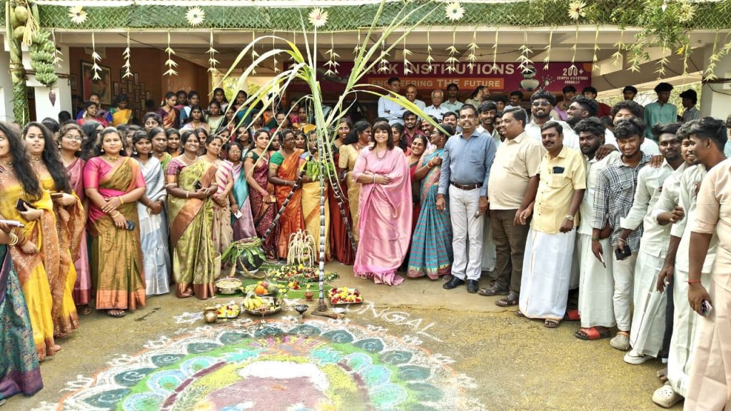 கிராமத்து திருவிழாவை நினைவூட்டும் வகையில் உரியடித்தல், கயிறு இழுத்தல், கும்மி ஆட்டம், ஒயிலாட்டம் உள்ளிட்ட பாரம்பரிய கலை நிகழ்ச்சிகள் நடத்தப்பட்டு பொங்கல் விழாவிற்கு தனித்துவம் சேர்த்தது.இந்த நிகழ்ச்சியில் பாஜக விளையாட்டுப் பிரிவு மாநில செயலாளரும், கல்லூரியின் தலைமை செயல் அதிகாரியுமான அனுஷா ரவி கலந்துகொண்டு மாணவர்களை ஊக்குவித்தார்.குறிப்பாக, கொங்கு மண்ணின் பாரம்பரிய துடும்பு இசை முழங்க, அதற்கேற்றவாறு மாணவ-மாணவியர் அனைவரும் உற்சாகமாக நடனமாடிய பொங்கல் விழாவை கொண்டாடி மகிழ்ந்தனர்.தமிழர்களின் கலாச்சாரம் மற்றும் பாரம்பரியத்தை பெருமைப்படுத்தும் விதமாக இந்த கொண்டாட்டம் அனைவரது கவனத்தையும் ஈர்த்துள்ளது.