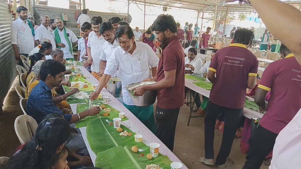மகா அன்னதானத்தை அருள்மிகு விருந்தீஸ்வரர் கோயில் அறங்காவலர் குழுத் தலைவருமான பி.வி.மணி, திமுக ஒன்றியச் செயலாளர் முன்னாள் மாவட்ட கவுன்சிலர் கார்த்திக் ஆகியோர் தொடங்கி வைத்தனர். இந்த விழாவிற்கான அனைத்து பூஜைகளையும் முன் நின்று விருந்தீஸ்வரர் கோயில் தயாநிதி குருக்கள் நடத்தி வைத்தார்.