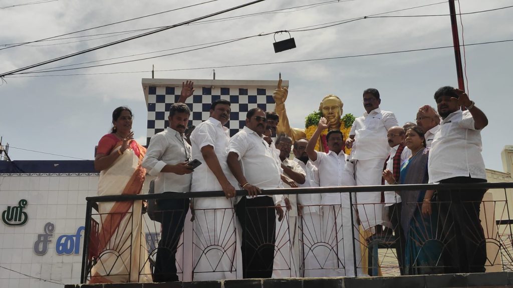 திருவுருவ சிலைக்கு மாலை அணிவித்தார். திருப்பத்தூர் சட்டமன்ற உறுப்பினர் ஏ நல்லதம்பி ஆம்பூர் சட்டமன்ற உறுப்பினர் விவநாதன். ஒன்றிய செயலாளர்கள் கிளை கழக நிர்வாகிகள் இந்த நிகழ்ச்சியில் உறுதிமொழி ஏற்றுக் கொண்டனர் அப்பொழுது திருப்பத்தூர் மாவட்ட மாணவனை அமைப்பாளர் பிரபாகரன் ஜோலார்பேட்டை ஒன்றிய செயலாளர் கவிதா தண்டபாணி சதீஷ்குமார். உமா கண்ணுறங்கம் கந்திலி ஒன்றிய செயலாளர். அசோக் குமார். குணசேகரன். முருகேசன். மோகன்ராஜ். டி ரகுநாத் பொதுக்குழு உறுப்பினர் அரசு.