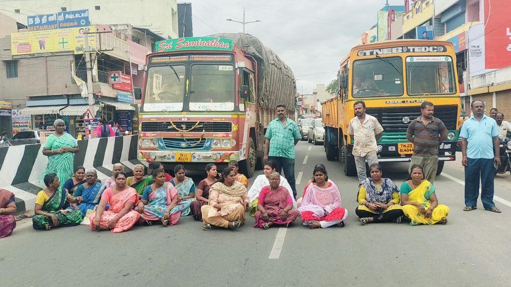 மேலும் இது தொடர்பாக வார்டு கவுன்சிலர் சுகுணாரமேஷ் மற்றும் நகராட்சி நிர்வாகத்திற்கு தகவல் அளித்தும் எவ்வித நடவடிக்கையும் எடுக்கஇல்லை எனவும் மேலும் இது தொடர்பாக மாவட்ட ஆட்சியர் அலுவலகத்தில் அப்பகுதிமக்கள் புகார் மனு அளித்துள்ளதாகவும், இருப்பினும் இதுவரை எவ்வித நடவடிக்கையும் மேற்கொள்ளப்படாததால் ஆத்திரமடைந்த அப்பகுதிமக்கள் இன்று திருப்பத்தூர் நகர மைய பகுதியில் திருப்பத்தூரிலிருந்து திருவண்ணாமலை செல்லும் சாலையில் திடீரென அமர்ந்து 50க்கும் மேற்பட்டோர் சாலை மறியலில் ஈடுபட்டனர்.