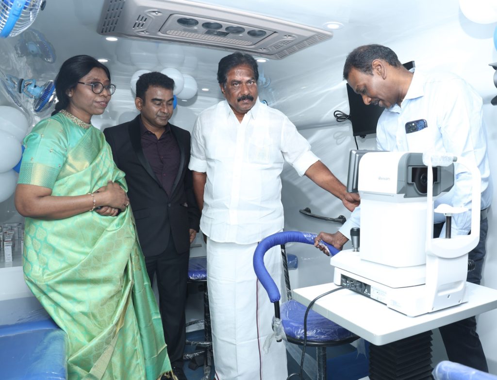 கண் பரிசோதனைக்கான இந்த நவீன மருத்துவ வாகனத்தின் செயல்பாட்டை தமிழ்நாட்டின் மாண்புமிகு வணிகவரி மற்றும் பதிவுத்துறை அமைச்சர் திரு. பி. மூர்த்தி அவர்கள் தொடங்கி வைத்தார்.