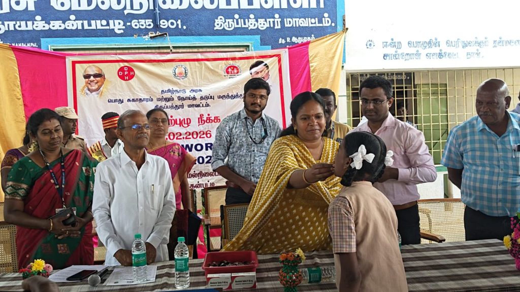திருப்பத்தூர் மாவட்டம், கந்திலி ஒன்றியம், கசிநாயக்கன்பட்டி அரசு மேல்நிலைப் பள்ளியில் மருத்துவம் மற்றும் மக்கள் நல்வாழ்வு துறை சார்பில் தேசிய குடற்புழு நீக்க நாள் இன்று அனுசரிக்கப்பட்டது. இதன் ஒரு பகுதியாக, பள்ளியில் பயிலும் 1,100 மாணவ–மாணவிகளுக்கு குடற்புழு நீக்க மாத்திரைகளை மாவட்ட ஆட்சியர் சிவசௌந்தரவல்லி வழங்கினார்