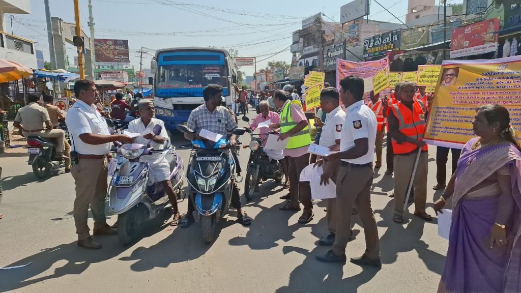 தேசிய சாலை பாதுகாப்பு மாதமாக ஜனவரி மாதம் முழுவதும் கடைபிடிக்கப்பட்டு வருகிறது. இதனை தொடர்ந்து தர்மபுரி மாவட்டம் பென்னாகரம் நெடுஞ்சாலைத்துறை மற்றும் போக்குவரத்து காவல் துறையினர் நெடுஞ்சாலைத்துறை பணியாளர்கள் ஆகியோர் ஒன்றிணைந்து சாலை பாதுகாப்பு விழிப்புணர்வு பேரணி நடத்தினர் இந்த சாலை பாதுகாப்பு பேரணியை பென்னாகரம் உதவி கோட்ட பொறியாளர் புருஷோத்தமன் கொடி அசைத்து துவங்கி வைத்தார். பின்னர் பேரணியானது அம்பேத்கர் சிலை முதல் வட்டார வளர்ச்சி அலுவலக சாலை, பேருந்து நிலையம் ,பென்னாகரம் காவல் நிலையம், போடூர் சாலை , ஒகேனக்கல் பிரிவு சாலை வரை சாலை விதிகள் பற்றிய விழிப்புணர்வு ஏற்படுத்தும் வகையில் ஹெல்மெட் அணிவோம் சாலையில் செல்போன் பேசிக்கொண்டு வாகனம் ஓட்ட வேண்டாம், சாலை விதிகளை கடைபிடிப்போம், பேருந்து படிகளில் தொங்கி பயணம் செய்யாதே, இரு சக்கர வாகனத்தில் சாகசம் காட்ட வேண்டாம் வாகனத்தில், அதிவேகமாக செல்லக்கூடாது மது அருந்தி வாகனம் ஓட்டாதே உள்ளிட்ட கோஷங்கள் எழுப்பி பேரணியாக சென்று வழியில் ஹெல்மெட் அணியாமல் வரும் இருசக்கர வாகன ஓட்டிகளுக்கும், பேருந்து ஓட்டுனர்களுக்கும் மற்றும் கடை உரிமையாளர்களுக்கும் சாலை பாதுகாப்பு விதிமுறைகள் அடங்கிய துண்டு பிரசுரங்கள் வழங்கி விழிப்புணர்வு ஏற்படுத்தினர்.