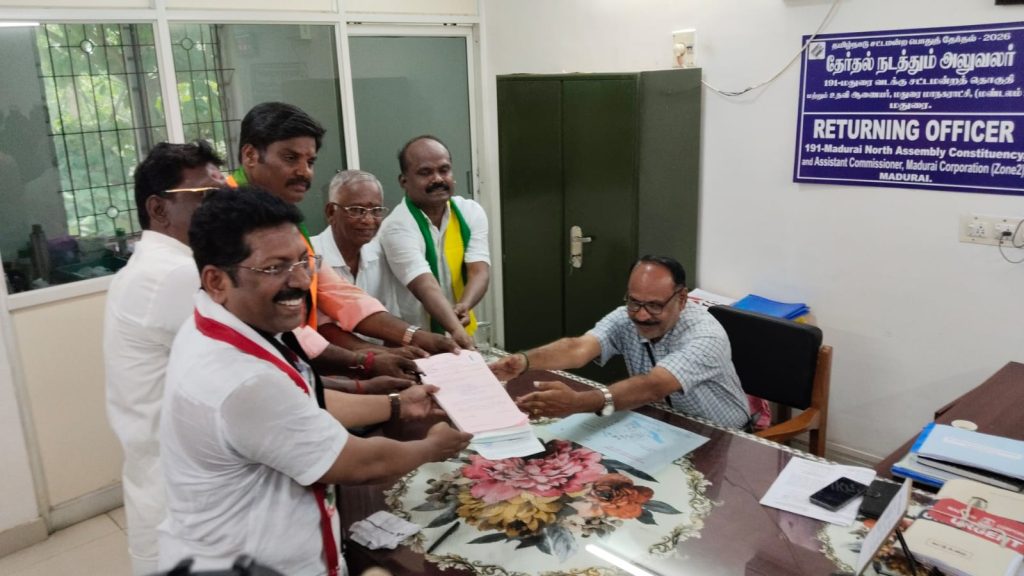 மதுரை வடக்கு தொகுதி கழக வேட்பாளராக டாக்டர் சரவணன் மதுரை மாநகராட்சி இரண்டாம் மண்டலத்தில் உள்ள தேர்தல் அதிகாரியிடம் வேட்பு மனு தாக்கல் செய்தார் .