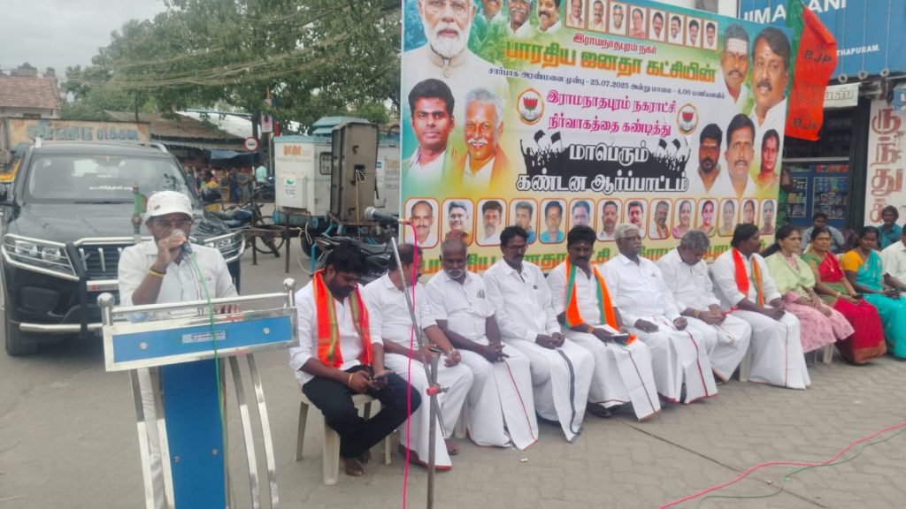 ராமநாதபுரம் நகராட்சியை கண்டித்து பா.ஜ.க சார்பில் ஆர்ப்பாட்டம்!!!