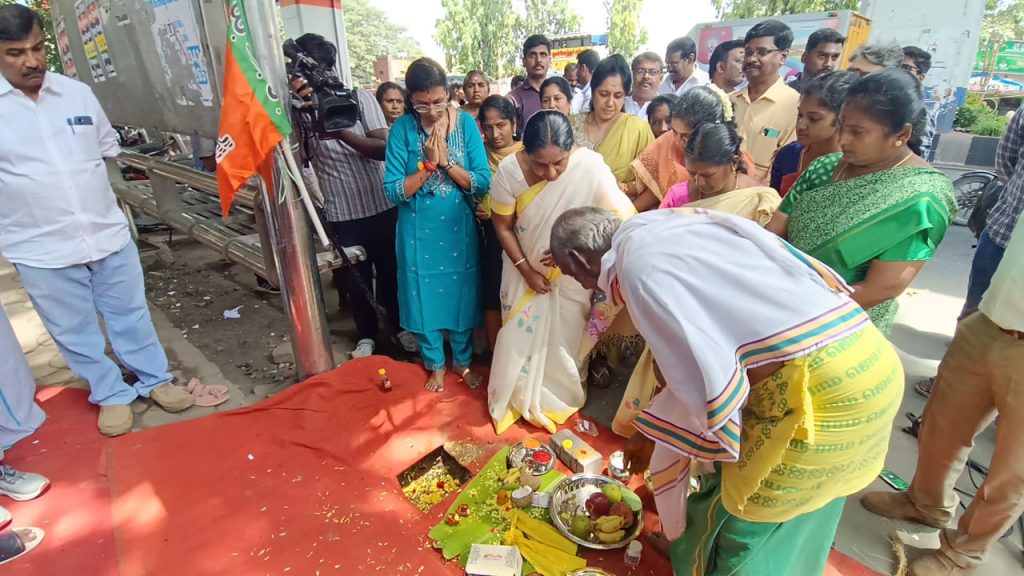 இதில், பாஜக தேசிய மகளிர் அணி தலைவரும், கோவை தெற்கு தொகுதி சட்டமன்ற உறுப்பினருமான வானதி சீனிவாசன் கலந்துகொண்டு புதிய பேருந்து நிழற்குடை கட்டுமான பணிகளை துவக்கி வைத்தார்.